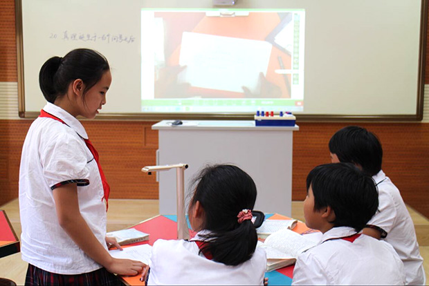 在課堂上,學生分組學習和討論課題,在自己座位上向同學展示自己解題過程;教師也可以隨時走下講臺,展示和分析學生典型問題,在輕松高效地師生互動過程中,實現真正意義上的翻轉課堂。