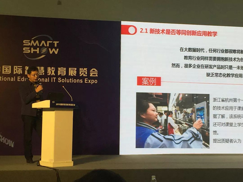 在展會首日的“教育信息化行業2019新起點暨教育信息化百家講壇”演講模塊,吉星創始人舒華俊發表了《新技術為創新教學應用服務》主題演講,同參展國內外重量級教育專家,圍繞教育信息化行業的核心議題,共同討論教育的未來發展: