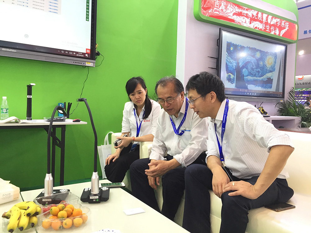 引人注目的三款新品分別為智慧校園整體解決方案、實驗室互動及模擬考試、書法繪畫無線互動教學(xué)解決方案