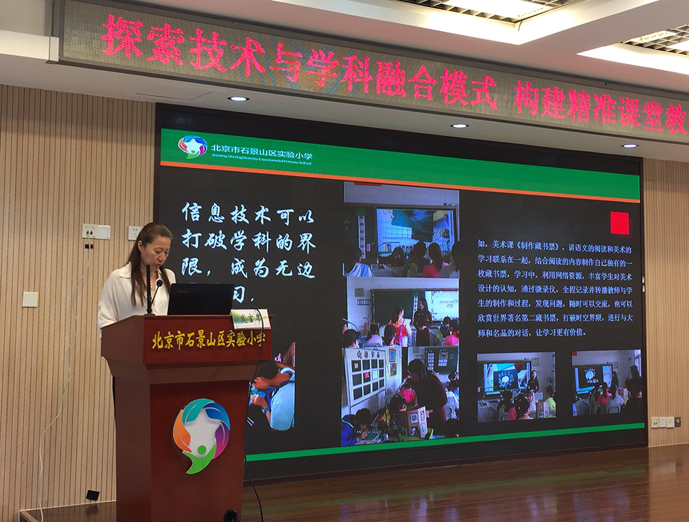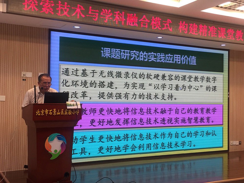 5月31日“探索技術(shù)與學(xué)科融合模式,構(gòu)建精準(zhǔn)課堂教學(xué)新常態(tài)”信息化成果研討會在北京石景山區(qū)實驗小學(xué)舉行,教育信息技術(shù)領(lǐng)域?qū)<摇⑹吧絽^(qū)教委、石景山分院領(lǐng)導(dǎo)、課題組代表及一線骨干教師蒞臨會議現(xiàn)場,共同見證智慧校園建設(shè)及現(xiàn)代信息技術(shù)手段下開展的新課程改革發(fā)展成果,吉星作為課題《基于無線微錄儀的課堂教學(xué)創(chuàng)新應(yīng)用研究》的主辦方,參加本次活動并作課題組經(jīng)驗分享。