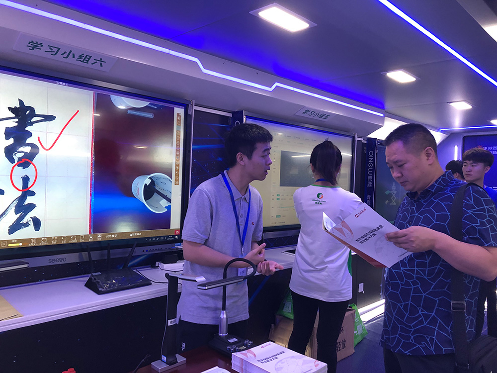 “創(chuàng)新公益行”大篷車(chē)首站在楊凌邰城實(shí)驗(yàn)學(xué)校正式亮相,啟動(dòng)儀式結(jié)束后,各級(jí)領(lǐng)導(dǎo)、師生紛紛走進(jìn)車(chē)內(nèi)進(jìn)行參觀體驗(yàn),吉星為大家?guī)?lái)最新的智慧校園全互動(dòng)系統(tǒng)、未來(lái)智慧書(shū)法教室等創(chuàng)新教育信息化應(yīng)用,贏得了前來(lái)參加活動(dòng)的各位領(lǐng)導(dǎo)和師生的認(rèn)可。