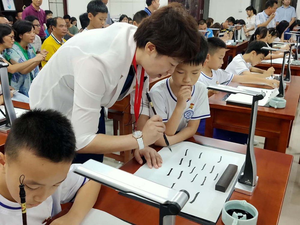 在6月下旬的書法特色教育創(chuàng)建與管理觀摩學習活動中,老師們觀摩了沙面小學姚丹校長執(zhí)教的書法示范課《橫的練習》,切身感受到吉星智慧書法課堂的魅力,體驗科技與書法的結(jié)合。