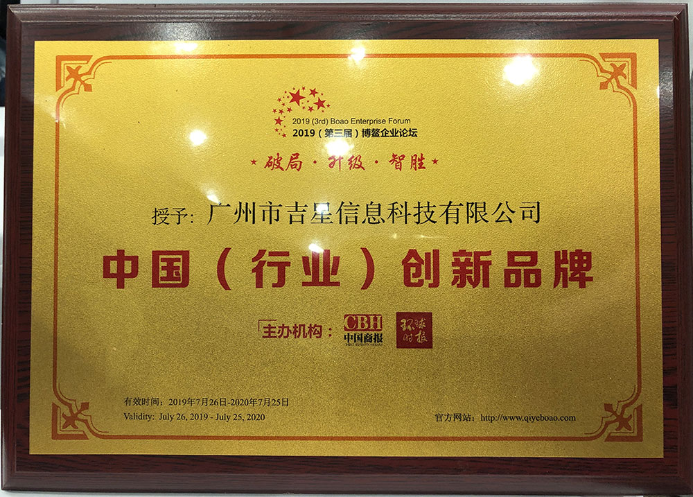 憑借著在教育行業(yè)的不斷探索深耕,廣州市吉星信息科技有限公司在本次2019(第三屆)博鰲企業(yè)論壇榮膺兩項(xiàng)大獎。廣州市吉星信息科技有限公司被授予“中國(行業(yè))創(chuàng)新品牌”榮譽(yù)稱號。