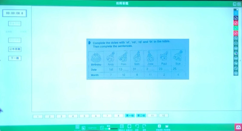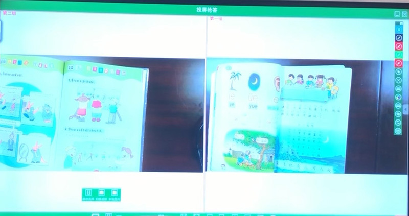 老師可通過投屏搶答、課堂搶答功能,同學(xué)們開始搶答,最先搶到的同學(xué)的桌面畫面會顯示在大屏