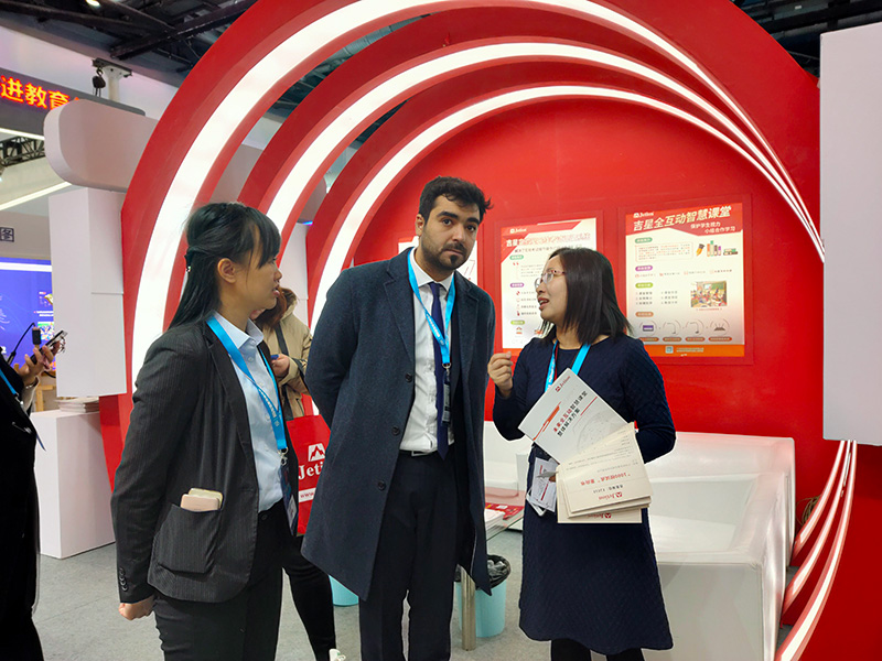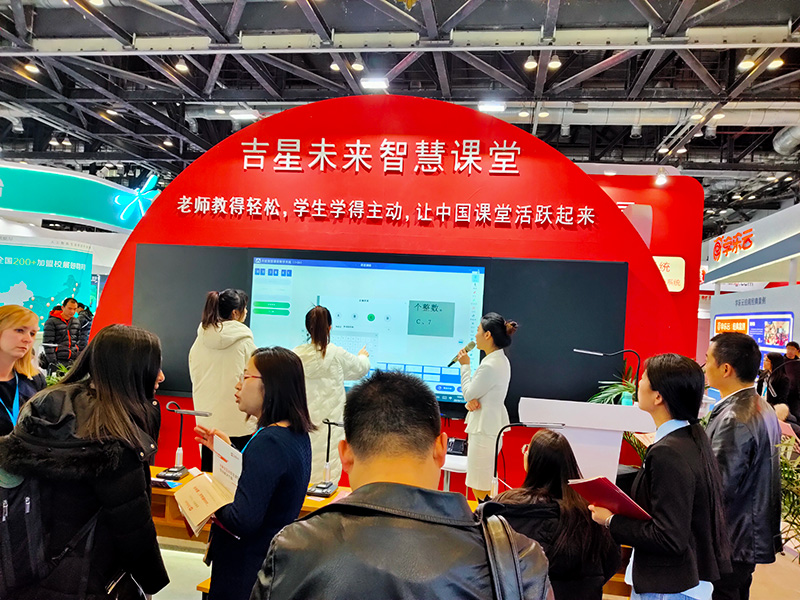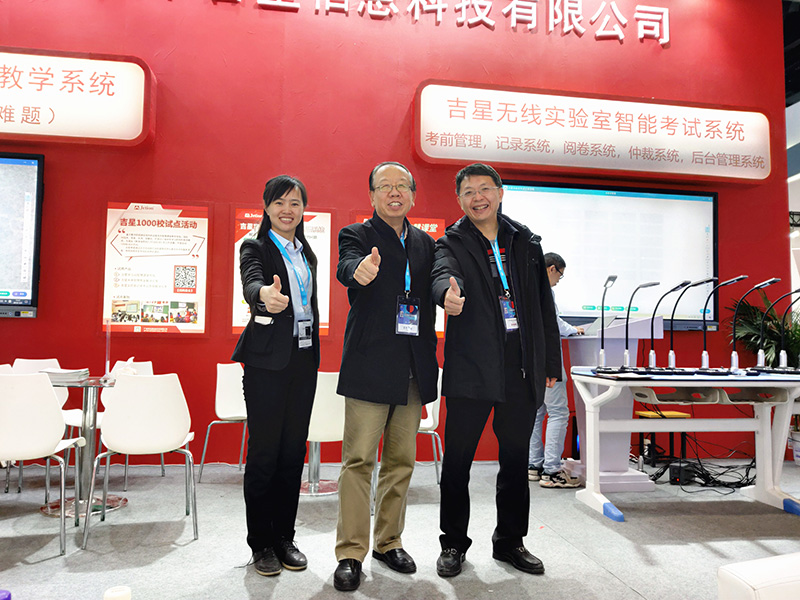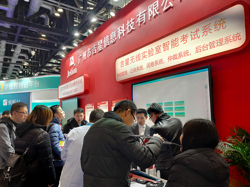 其中,吉星的全互動智慧課堂與實驗室智能考試系統備受大家歡迎,展區人潮涌動,眾多學校、經銷商現場申報試用。