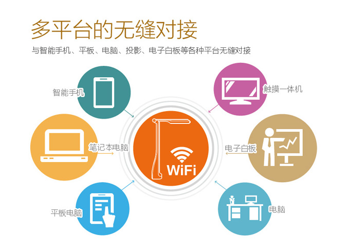 無線視頻展臺(tái)可以通過WIFI同步連接到電子白板、一體機(jī)、電腦、筆記本、平板、手機(jī),在課堂上用各種設(shè)備觀看的同時(shí)還可以將老師的教學(xué)過程錄制下來,隨時(shí)隨地回放視頻,方便學(xué)生溫故知新 。