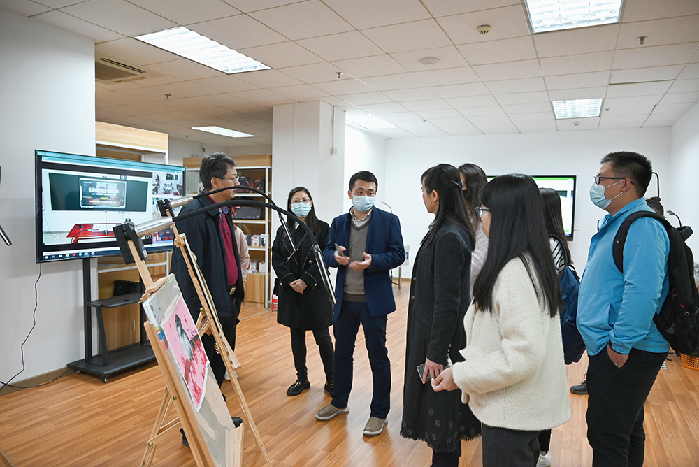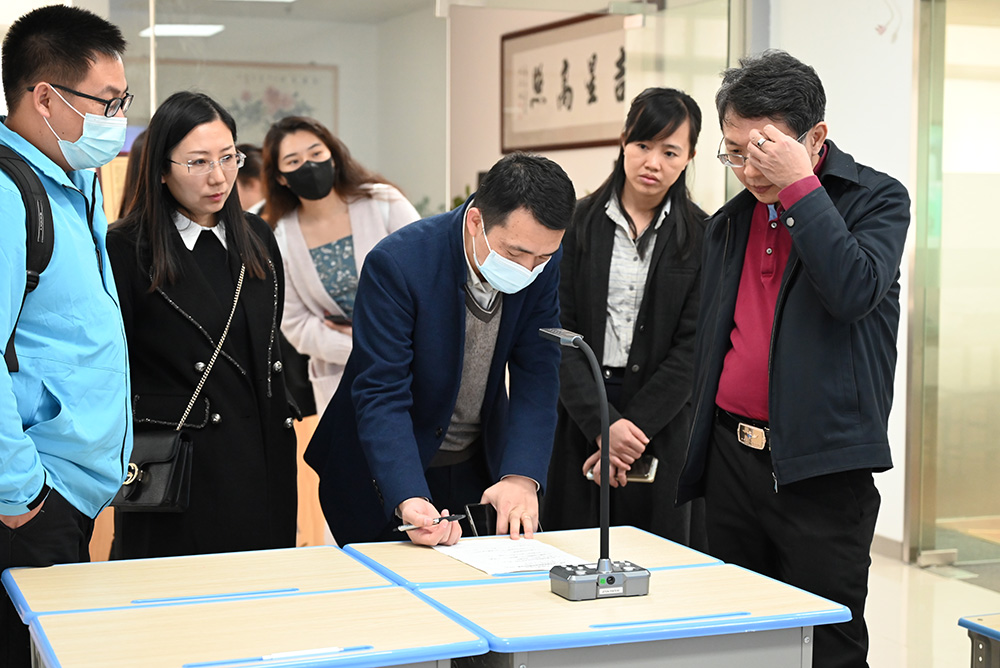 在參觀教學展區時,胡副院長一行認真聽取了吉星董事長舒華俊對于系統的介紹,觀看了吉星強交互專遞課堂在不同教學場景下的真實運行情況。