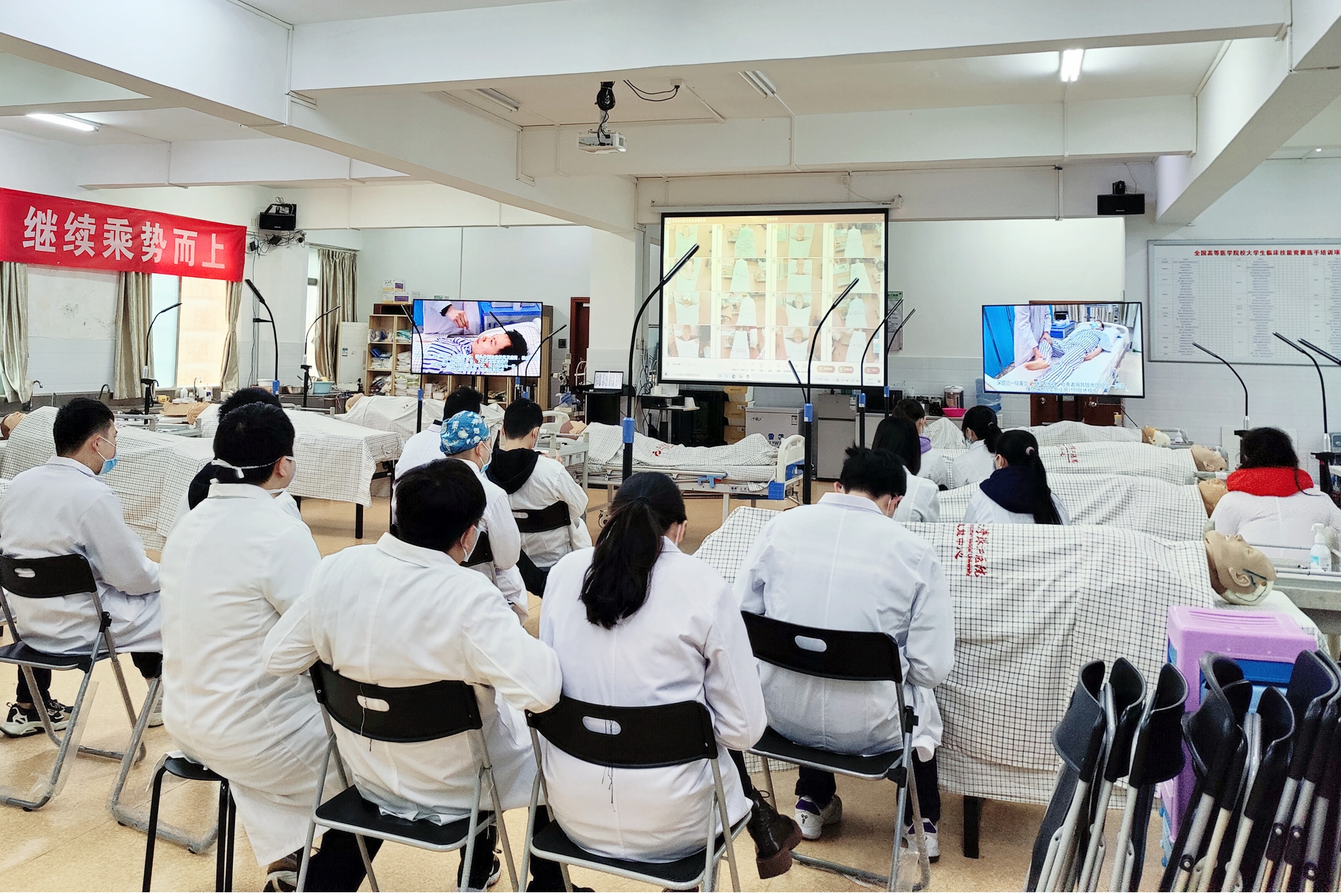 南方醫(yī)科大學(xué)珠江醫(yī)院臨床技能中心通過多模態(tài)強(qiáng)交互系統(tǒng),實(shí)現(xiàn)與南海經(jīng)濟(jì)開發(fā)區(qū)人民醫(yī)院-官窯校區(qū)、獅北服務(wù)站3方互聯(lián)互通,進(jìn)行遠(yuǎn)程培訓(xùn),異地展示老師的手法和機(jī)器內(nèi)部的操作細(xì)節(jié),異地培訓(xùn)教學(xué)也可達(dá)到面對(duì)面效果,共享優(yōu)質(zhì)的醫(yī)療設(shè)備資源,擴(kuò)大名師的教學(xué)受眾面,提高培訓(xùn)的質(zhì)量。