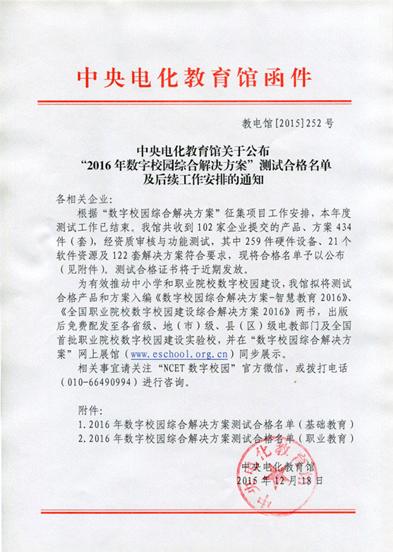 吉星成功通過中央電教館2016年“數(shù)字校園綜合解決方案”測(cè)試