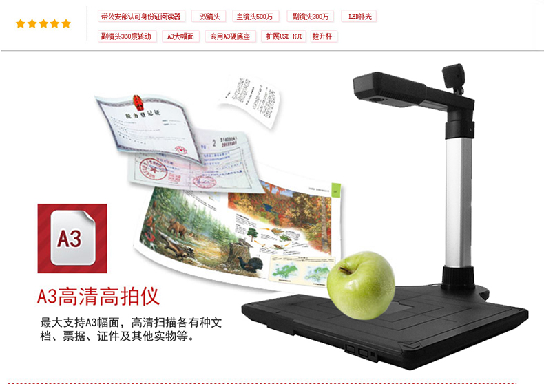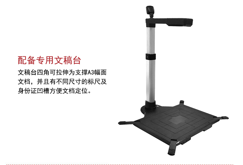 固定可伸縮底座(底座可依據所掃描文件及物品的幅面范圍滑動調節) |