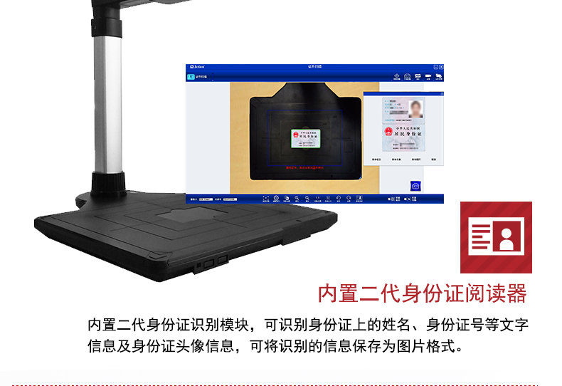內置二代身份證識別模塊,支持集成二代身份證閱讀器 |