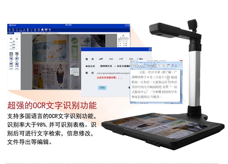 支持OCR識別,對掃描件實現智能定位;支持自動剪裁,自動糾偏; |