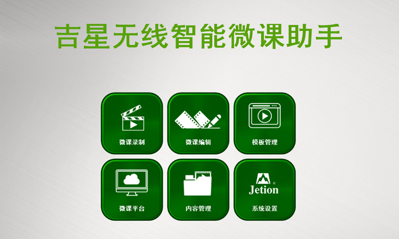 由吉星自主研發(fā)、真正實(shí)現(xiàn)微課錄制和編輯的工具軟件。它可與吉星無線微錄儀視頻展臺直接連接,為用戶提供“微課錄制、微課編輯、自定義模板管理、微課上傳”等多種微課制作、編輯的常用功能。